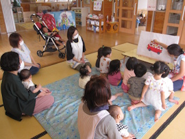 ・お部屋で遊びましょう!!(終了) 今日は3カ月のお友だちが遊びに来てくれました。園児から「かわいいね」と声をかけてもらったり、頭を撫でてもらい嬉しそうなお友だちでした♪ ![]() |